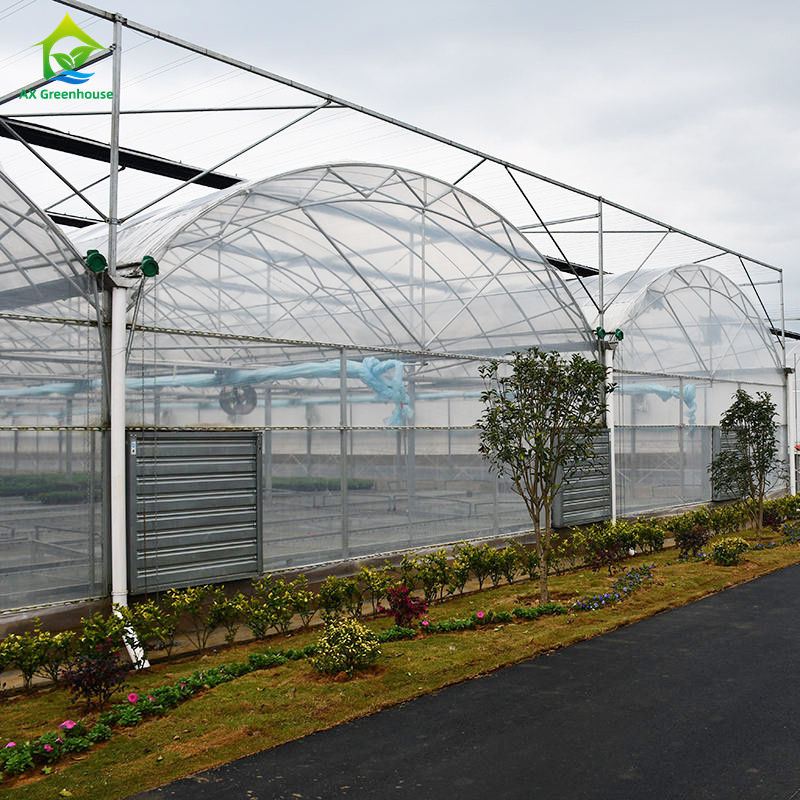 As estufas arqueadas multi-vão têm forte capacidade de resistência à carga de vento e à carga de neve, o interior pode ser adicionado a uma camada de isolamento em arco. No verão, o uso de almofada de resfriamento e ventilador do sistema de resfriamento, ventilação lateral ou superior do motor de enrolar e sombreamento externo para colaborar para obter o efeito de resfriamento. Uso acessível de uma ampla gama geralmente faz 6 metros, 7 metros, 8 metros, 9,6 metros de vão, os materiais de cobertura superior geralmente usam filme plástico, cercado pela membrana não se limita ao filme, também pode ser usado painel de PC ou vidro e outros materiais de cobertura.
