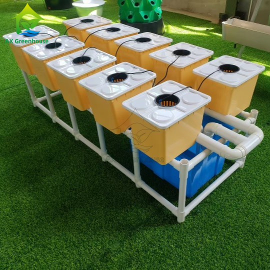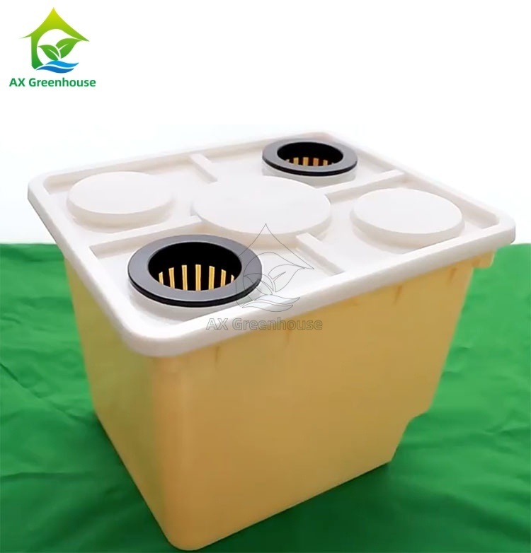 Sistema hidropônico Dutch Bucket é projetado para o cultivo de culturas de videira - tomates, pepinos, berinjelas e pimentões. Os baldes holandeses, também conhecidos como baldes de plantio HL, estão disponíveis nas cores bege e preta, com uma tampa superior branca e uma estrutura de design exclusiva, que é mais propícia ao crescimento das raízes das plantas. A tampa superior pode bloquear a luz e evitar a reprodução de algas. O dispositivo de drenagem por sifão inferior permite que o excesso de solução nutritiva flua de volta para o tanque de solução nutritiva. Há um aquífero de 5 cm na parte inferior, que é adequado para o cultivo de tomates, pepinos, pimentões, berinjelas e outras frutas e vegetais.